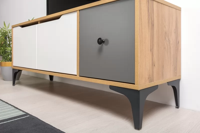 Тумба Вайс гармонично сочетает в себе строгий и брутальный декор крафтового дуба со спокойными скандинавскими фасадами.