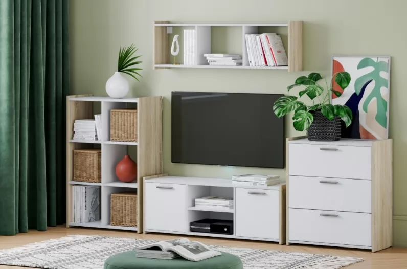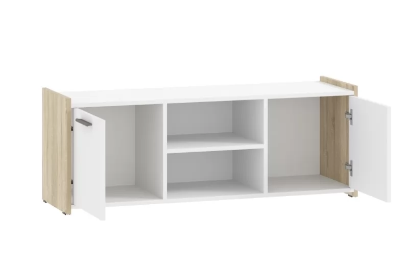 Тумба ТВА Симпл, выполненая в Скандинавском стиле и имеет минимальные габариты делая тумбу функциональной и стильной. Характерная особенность тумбы «Симпл» - комбинация полок и ящиков. На полках можно размещать предметы декора, книги.Вместительная ниша, за распашными дверями, будет удобна для хранения необходимых мелочей.