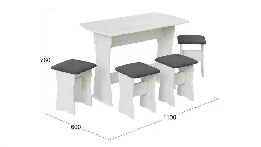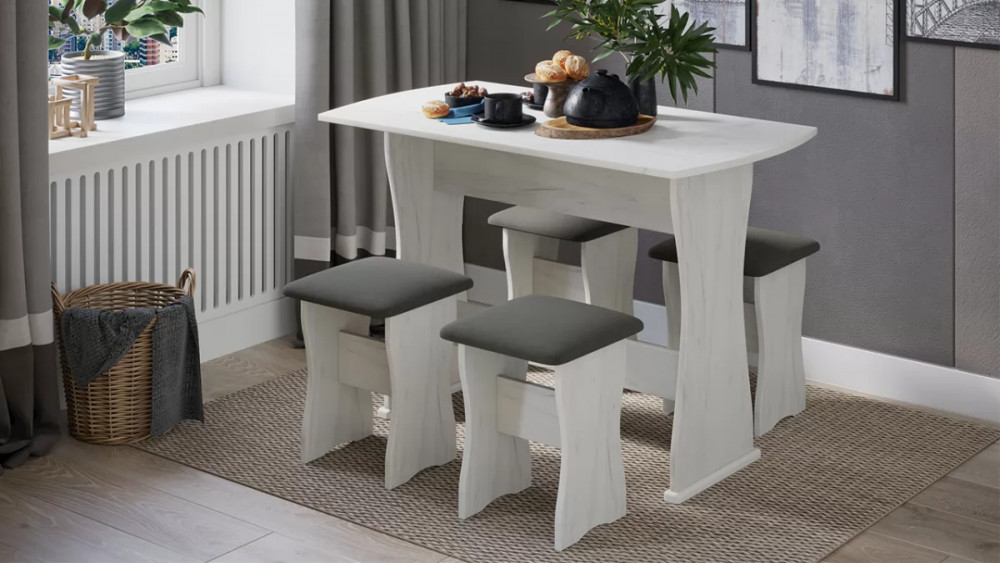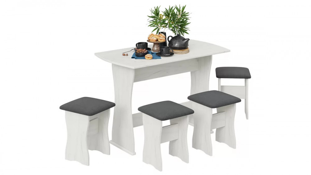 Дополнительная информация: Комплектация : стол + 4 табурета, материал мягкого сидения - кожзам.