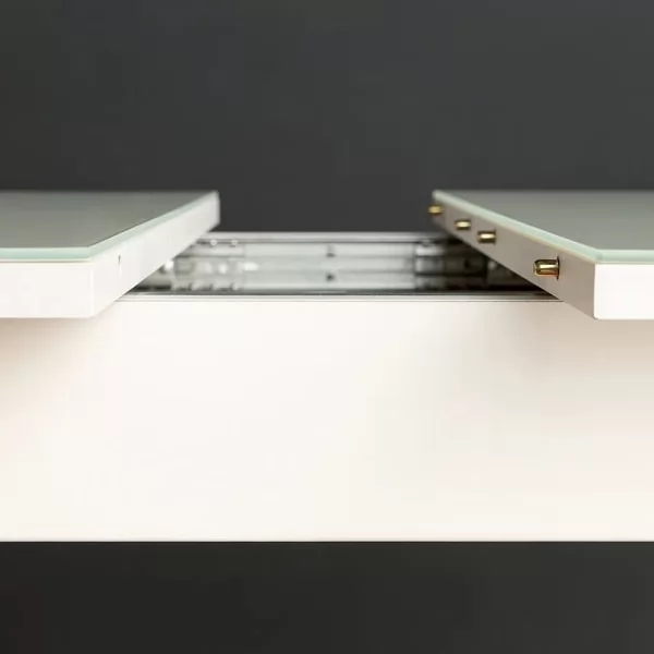 Синхронный механизм раздвижения столешницы и раскладная вставка типа "бабочка" ЛДСП