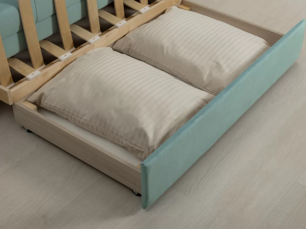 Габаритысложенный (Д x Г х В, мм): 1450 x 800 x 840разложенный (Д x Г х В, мм): 1450 x 2000 x 770спальное место (Д x Ш, мм): 1950 x 1200высота посадки (мм): 460глубина сиденья (мм): 650высота спинки (мм): 450высота подлокотника от сиденья (мм): 120максимально допустимая нагрузка: 80 кгМеханизм трансформацииВыкатной с гнутоклееными латамиБельевой ящикестьодно отделениеразмер отделения (Д x Ш, мм):  1100 x 628 x 100Варианты исполнения6 артикуловсочетание тканей только как на фотоМатериалыосновная ткань: Киви (велюр) / Макс (велюр)выполняется в тканях: Киви 54 велюр (ментоловый)каркас:
