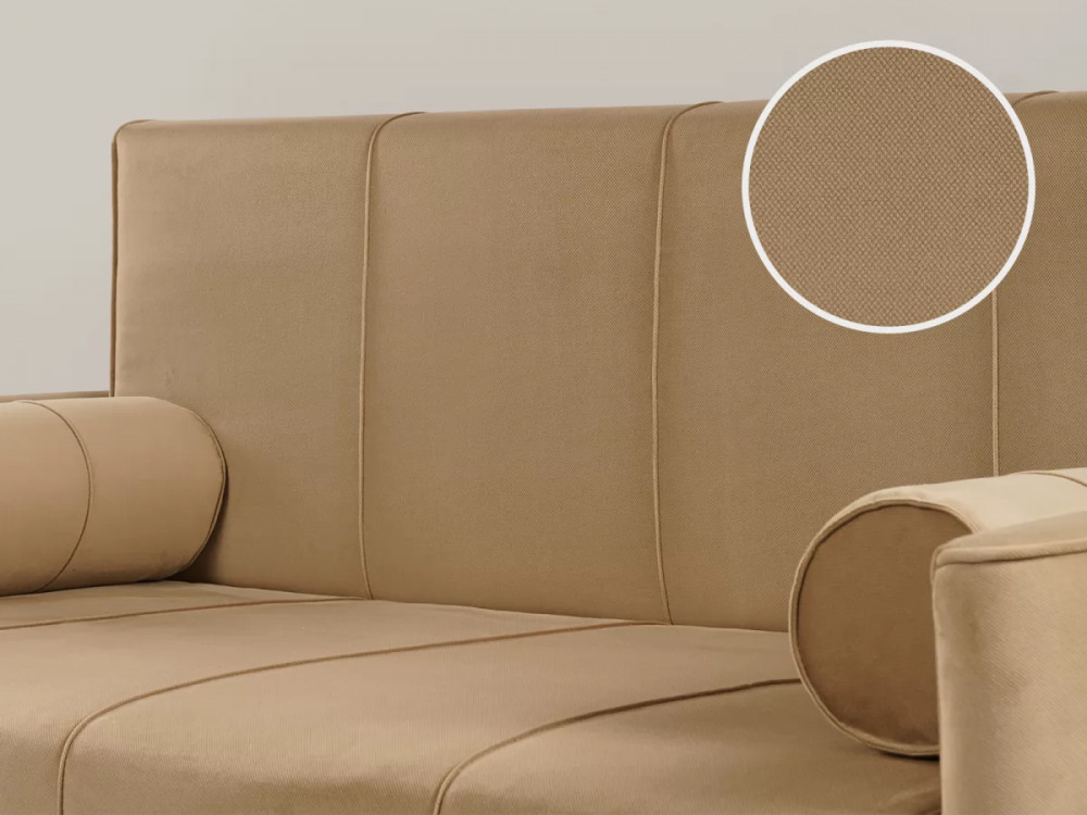Габаритысложенный (Д x Г х В, мм): 1450 x 800 x 840разложенный (Д x Г х В, мм): 1450 x 2000 x 770спальное место (Д x Ш, мм): 1950 x 1200высота посадки (мм): 460глубина сиденья (мм): 650высота спинки (мм): 450высота подлокотника от сиденья (мм): 120максимально допустимая нагрузка: 80 кгМеханизм трансформацииВыкатной с гнутоклееными латамиБельевой ящикестьодно отделениеразмер отделения (Д x Ш, мм): 1100 x 628 x 100Варианты исполнения6 артикуловсочетание тканей только как на фотоМатериалыосновная ткань: Киви (велюр) / Макс (велюр)выполняется в тканях: Макс 210 (песочный)каркас: фанера деревянный брус ДСП ДВП ЛДСПоснование матраса: ППУ на основании из гнутоклееных латдекоративные подушки, шт: 2наполнитель подушек: полиэфирное волокно «шарики»материал опор: пластикцвет опор: черныйвысота опор (мм): 25ДекорНа фронтальной части спинки дивана прострочены защипы (3 шт.). По торцам втачен кант. На декоративных валиках прострочены защипы -2 шт. и защип вдоль круглого торца. Сидение имеет 3 защипа. Верхний торец подлокотников полукруглый, на ребре полукруга втачен кант.Назначениев молодежную в детскую в гостевую комнатуТребуется ли сборкадаУпаковкаколичество коробок, шт: 1общий вес с упаковкой, кг: 56,6Гарантия: 18 месяцев