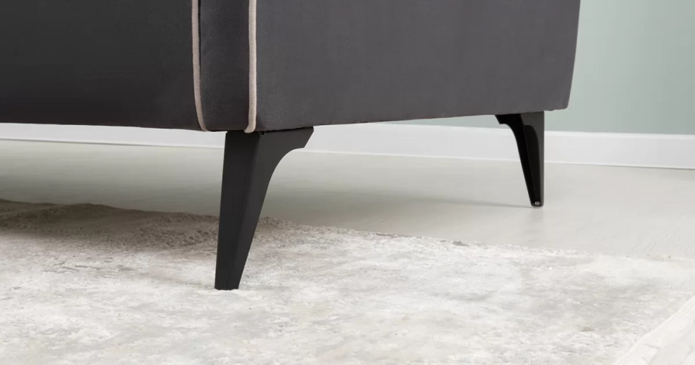 ДВПдекоративные подушки, шт: -2наполнитель подушек: -крошка ППУ и полиэфирное волокно «шарики»материал опор: металлцвет опор: черныйвысота опор (мм): 165ДекорСпинка и сиденье разделяются пополам двойным кантом по центру и одинарным по краям сидения, для придания одной единой формы. Подлокотники с изгибом на лицевой стороне и мягкими закругленным углом со складками, с выраженным контрастным ровным кантом по внешнему контуру изделия и изогнутой линией канта.Назначениев гостиную