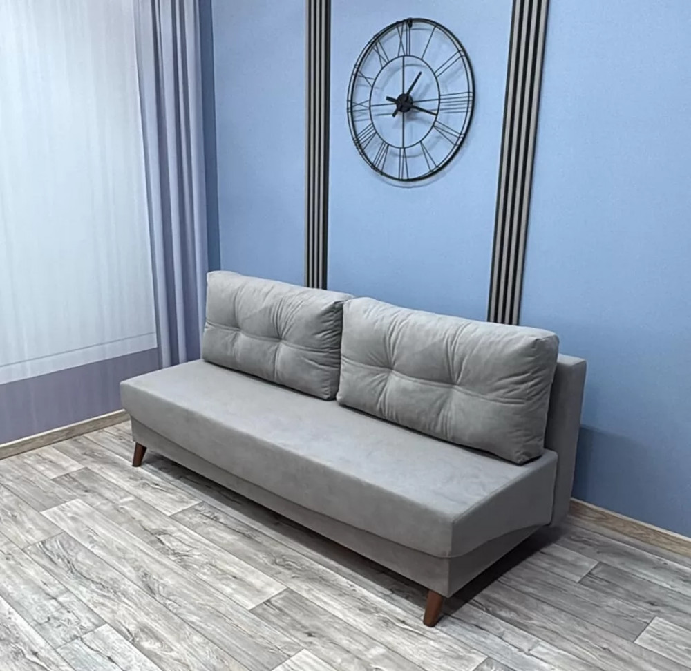 Прямые пропорциональные линии этого дивана актуальны во все времена. Механизм трансформации «Пантограф» (тик-так) позволяет формировать идеально ровное спальное место. Внутри расположен вместительный бельевой короб для постельных принадлежностей. Отсутствие подлокотников зрительно увеличивает размер дивана.