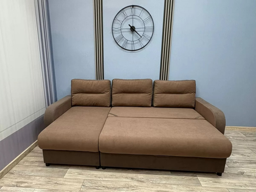 Угловой диван «Дебют Евро» украсит любой интерьер и будет радовать обладателей своей функциональностью. В этом диване имеется два вместительных короба для хранения постельных принадлежностей, а удобный в эксплуатации механизм трансформации «Пантограф» превратит этот диван в кровать с ровным спальным местом. Съемные подлокотники упрощают процесс транспортировки.