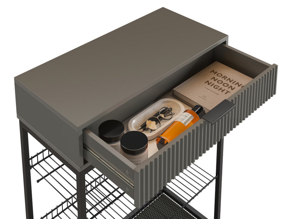 Обувница Вельвет прекрасно сочетает в себе стиль и функциональность. Её дизайн в стиле лофт идеально подходит для современных интерьеров. Выдвижной ящик с шариковыми направляющими обеспечивает бесшумное и плавное открывание, предоставляя удобный доступ к вашим аксессуарам и мелочам. Регулируемые опоры и специальный коврик обеспечивают дополнительный комфорт и защиту.