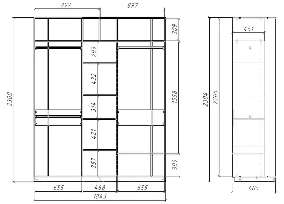 1843х2300х605 мм