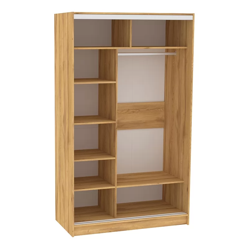 Продуманное внутреннее наполнение шкафа состоит из стеллажа для белья и стационарной штанги длиной 725 мм. На ней поместится как минимум 10 плечиков с верхней одеждой. В изготовлении шкафов-купе STRIKE использована прочная стальная система треков «Найди» цвета Металлик. Двери шкафов дополнены ручками из массива и шлегелем, который смягчает удары дверей при закрывании, а также защищают вещи от попадания пыли. Благодаря скрытым полкодержателям полки жестко крепятся на необходимой высоте.
