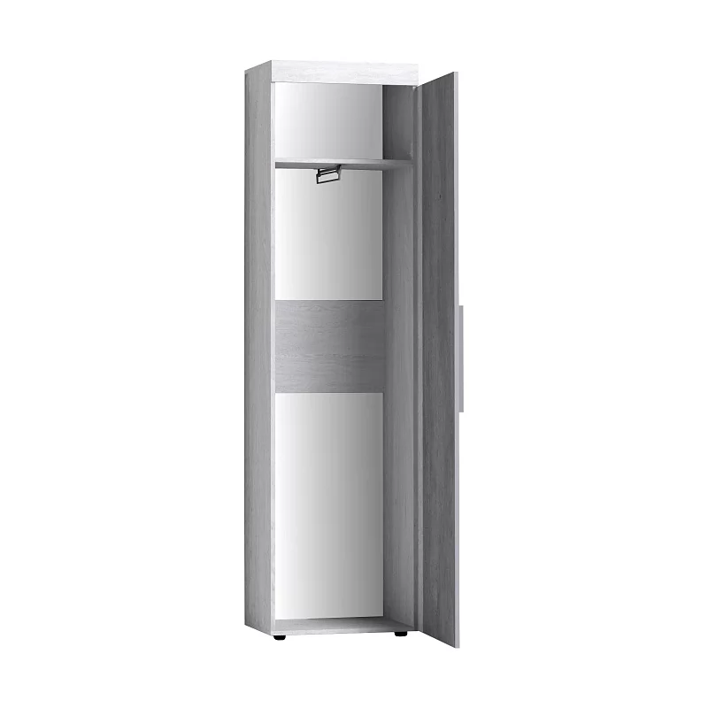 Однодверный платяной шкаф с полкой и выдвижной штангой предназначен для хранения длинной и короткой одежды на плечиках. В такой комплектации (с тремя дополнительными полками) выдвижную штангу можно не устанавливать, либо сократить свободное пространство под ней.