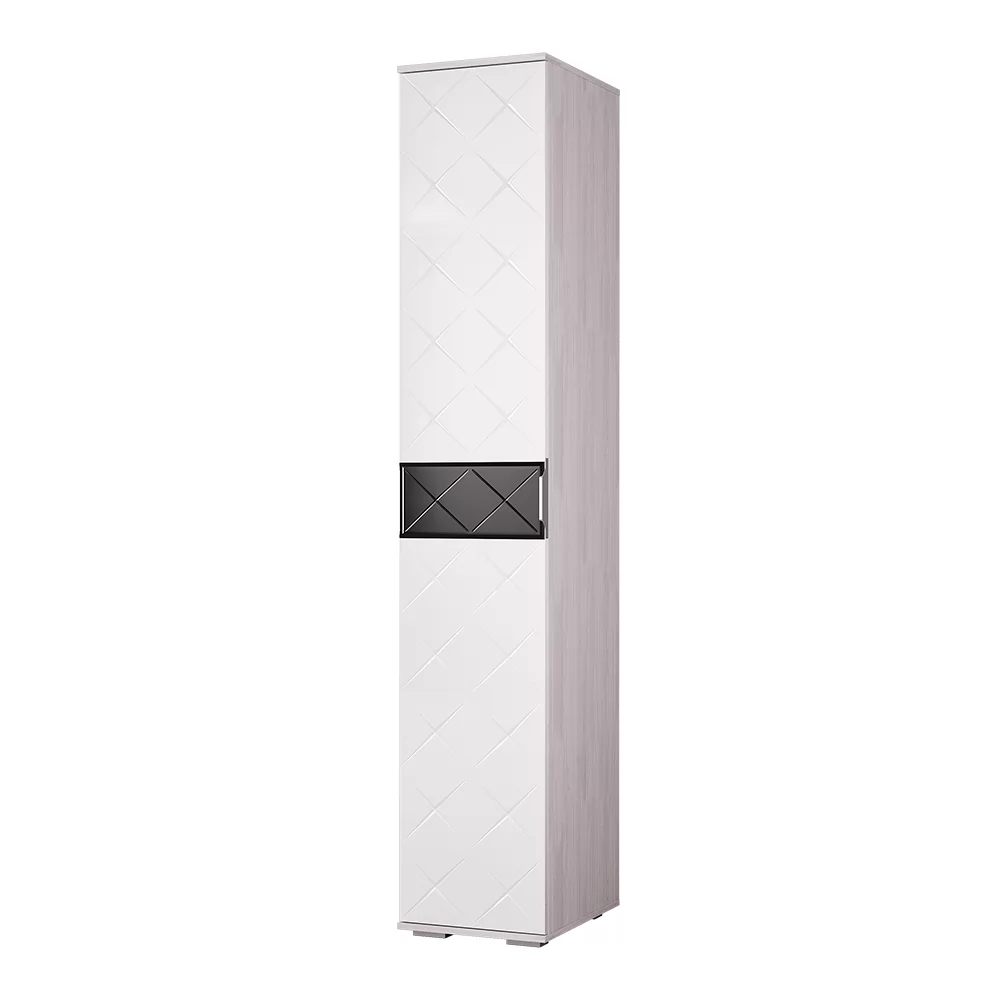 -изделие имеет белый глянцевый фасад со вставкой из черного стекла (лакобель) и гравировкой в виде ромбов,
