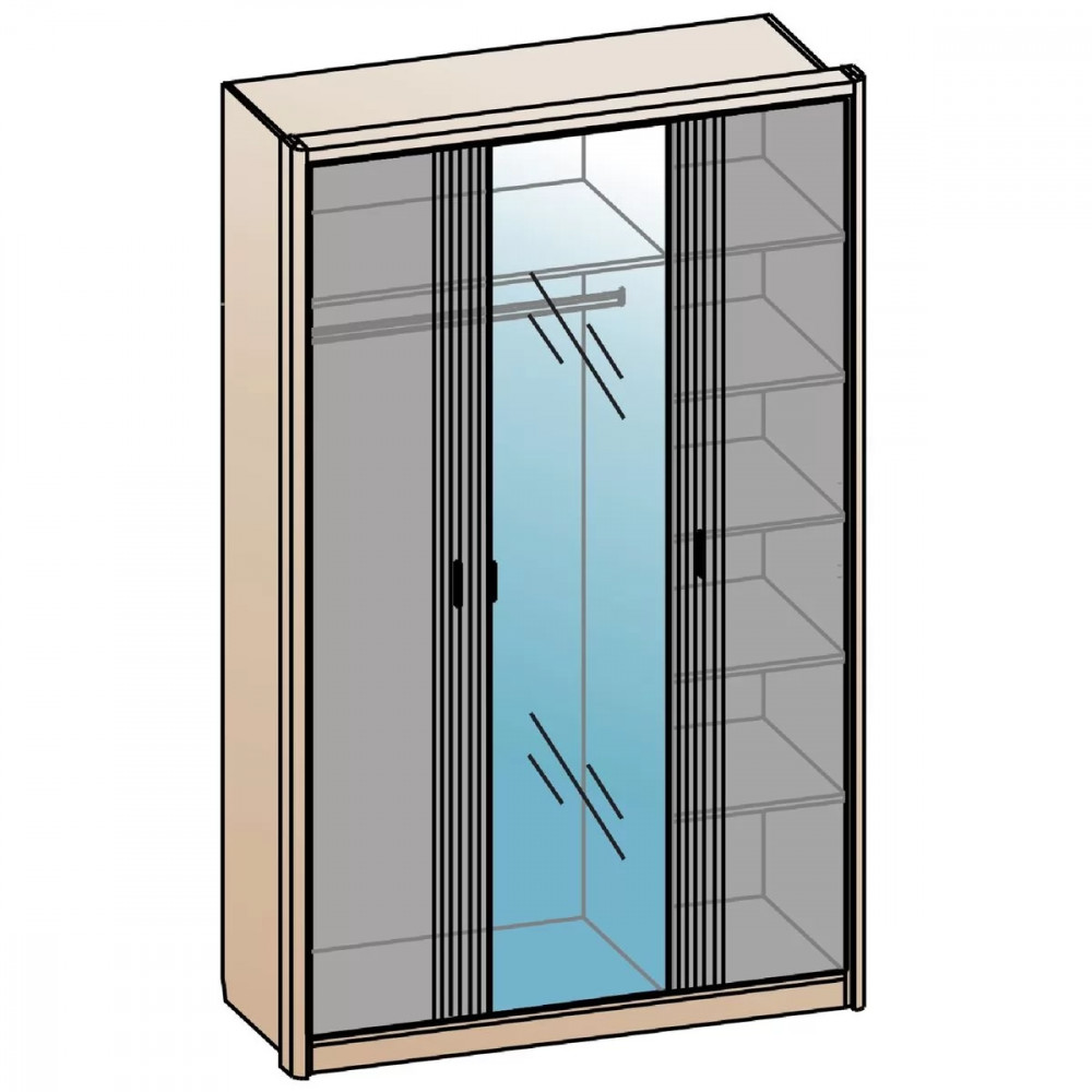 Фасады шкафов декорированы зеркалами с обработкой фацет. Высота шкафов составляет 2330 мм, а полезная глубина 568 мм. Шкафы изготовлены из материала ЛДСП 16 мм, задняя стенка из ХДФ. Фасады представлены как в однотонном так и в комбинированном варианте: створки из МДФ 16 мм под пленкой ПВХ.