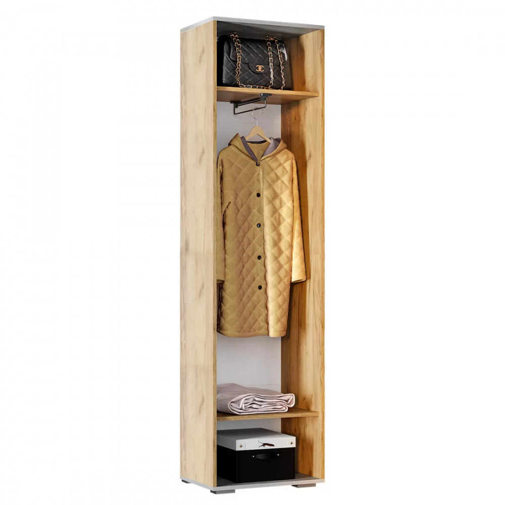 - комплектация представляет собой отделение с выдвижной штангой для одежды на вешалках и полок для вещей и аксессуаров.
