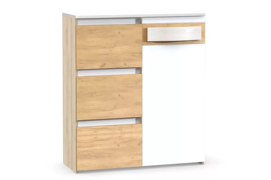 Комод "Лакки" прекрасно впишется в интерьер спальни. Система хранения состоит из трех выдвижных ящиков и закрытого отделения с двумя полками. В основу этой концепции положена одна из популярнейших тенденций дизайна интерьера – стремление сделать ваш дом еще более просторным, светлым и уютным. Обилие белого цвета, контрастно подчеркнутого фактурным деревом, вдохнет в пространство вашего дома новую жизнь