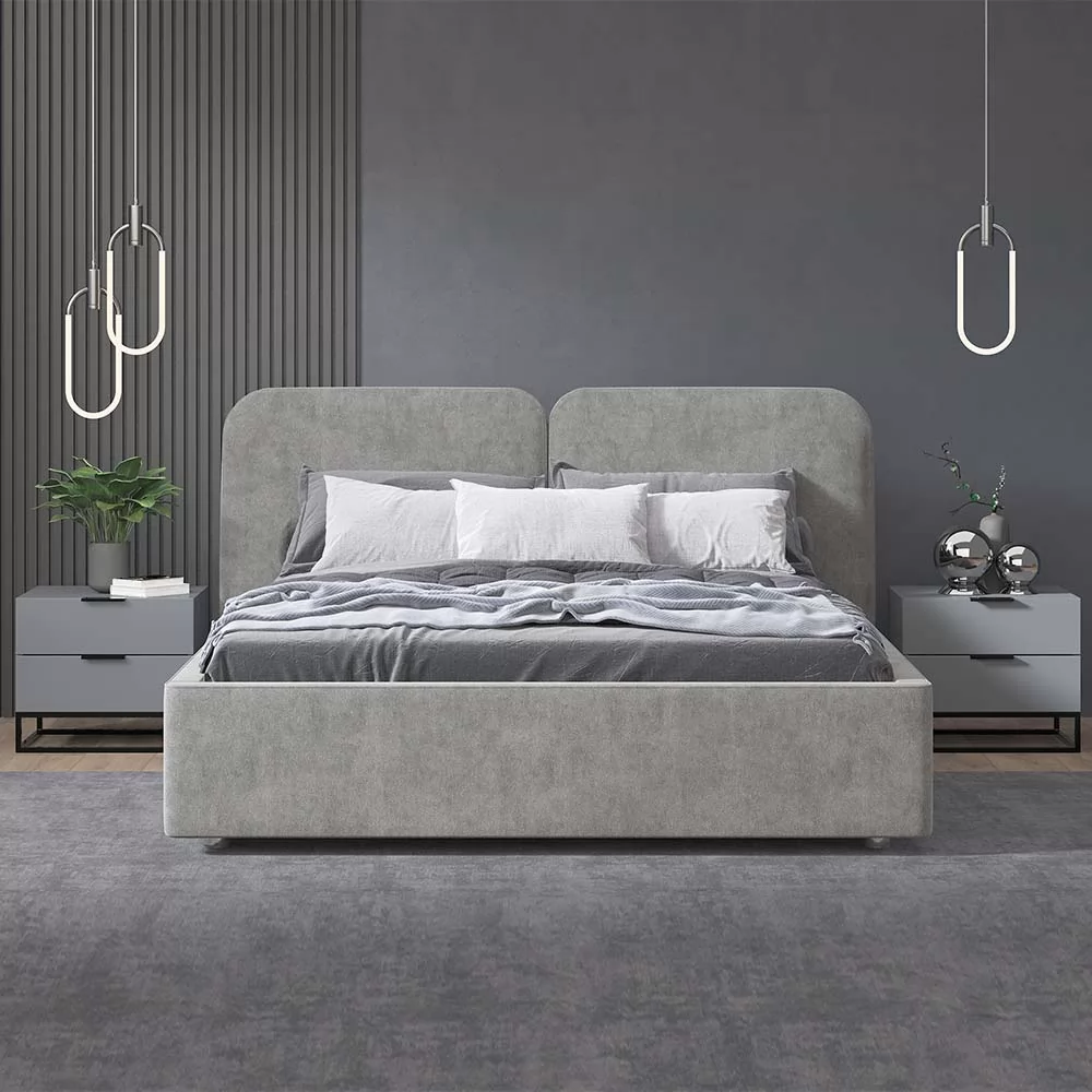 • Мягкая обивка изголовья, выполненная в виде двух объемных подушек добавляет комфорта кровати