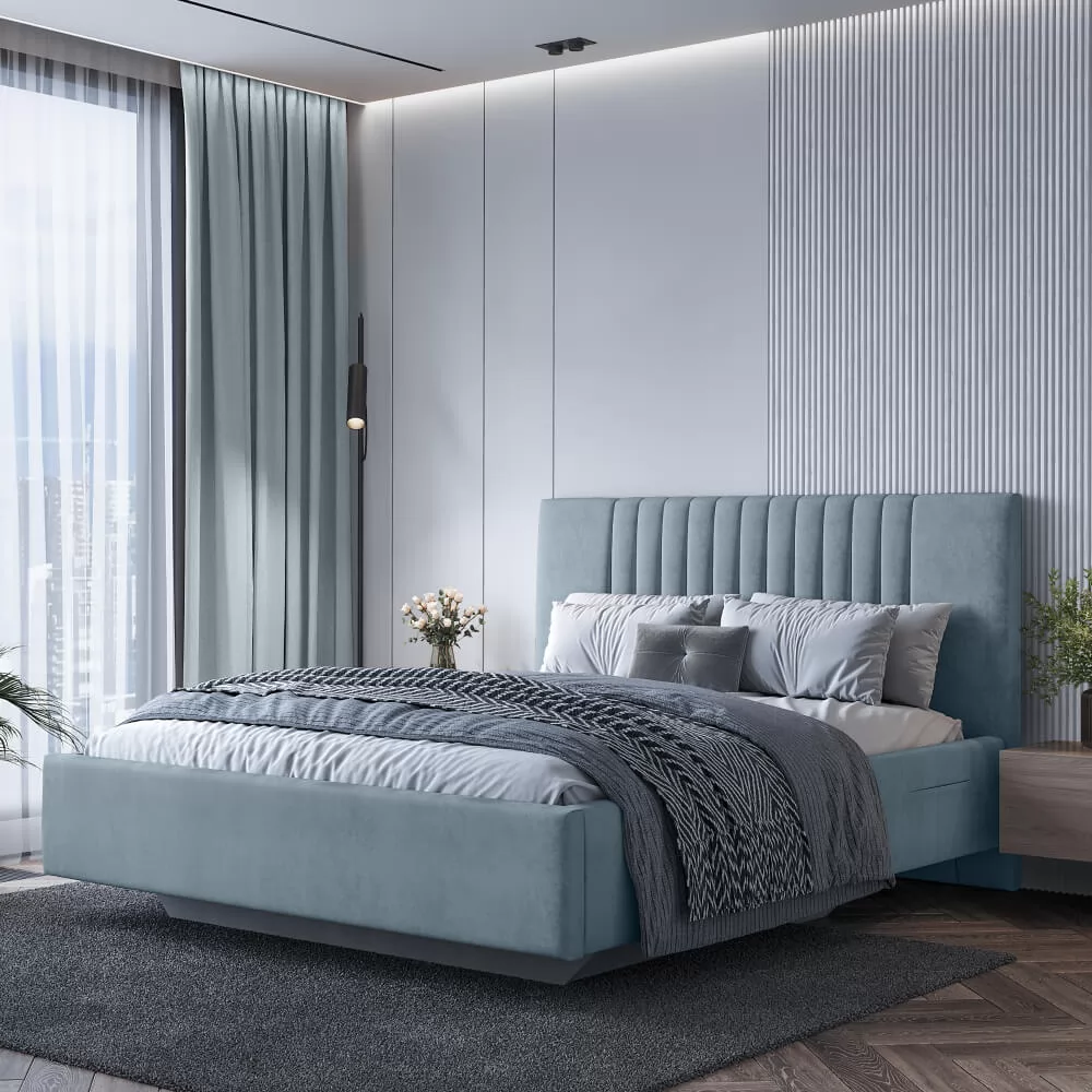Дизайн с вертикальными линиями изголовья, разбавят монотонность интерьера.