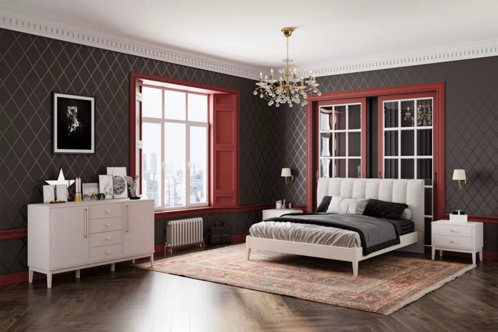 • Комод 4 ящика + 2 двери Джали Персидский жемчуг/ МДФ Лак Льняной