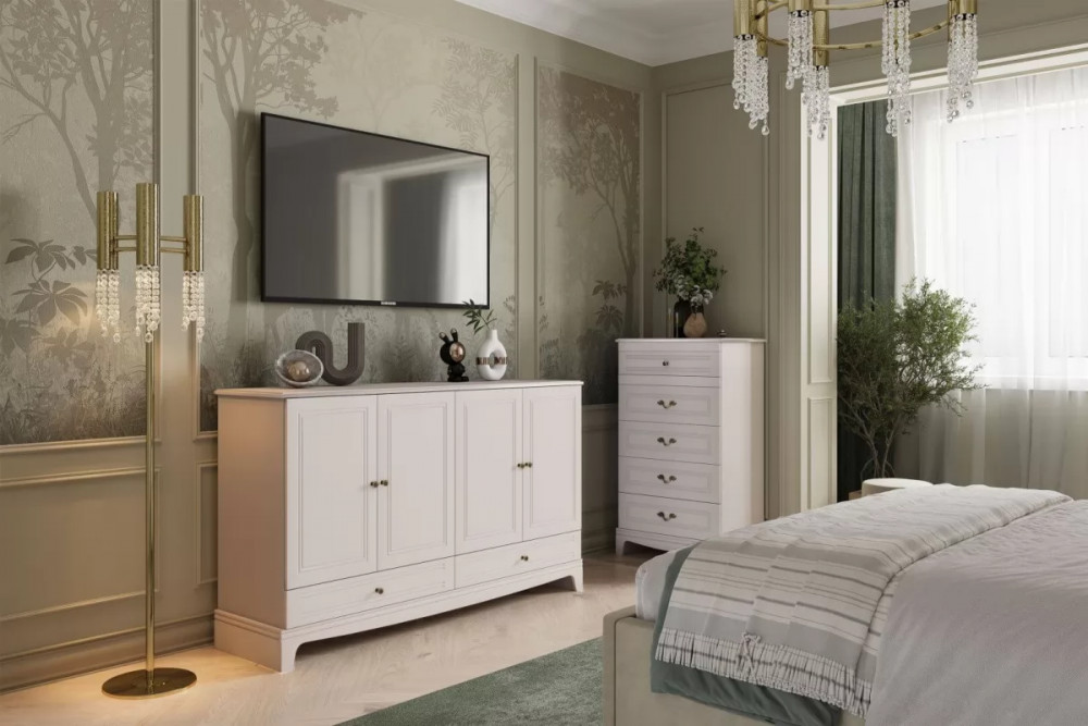 • Комод 4 двери + 2 ящика Лорето Персидский жемчуг/Лак Льняной