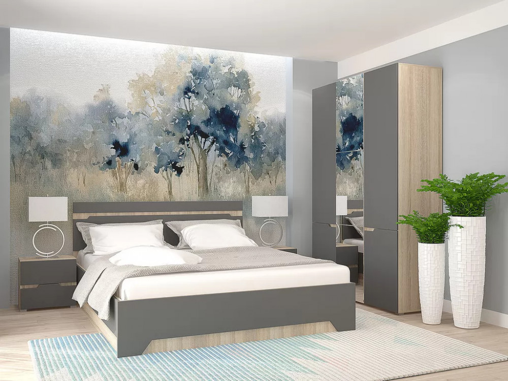 Спальный гарнитур с 3-х створчатым шкафом Анталия Сонома-Графит софт в Надыме