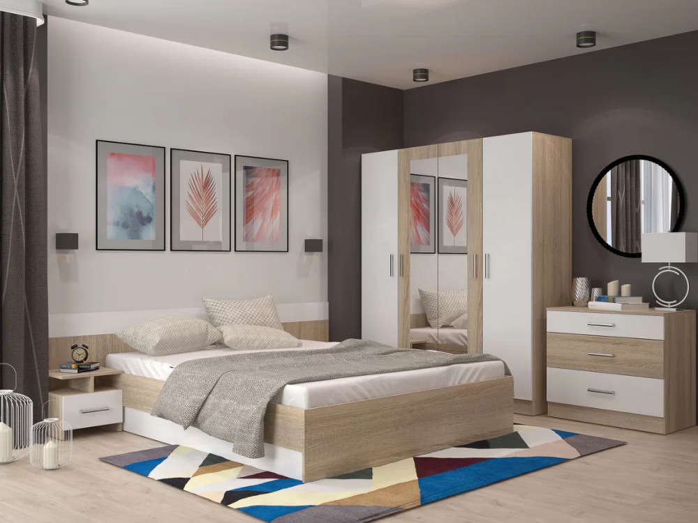 Спальня Леси Сонома-Белый с четырехстворчатым шкафом в Надыме