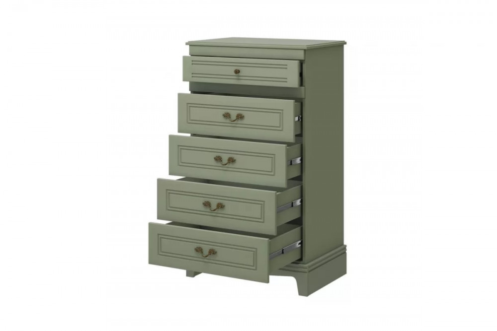 Глубина: 455 мм Ширина: 700 мм Высота: 1216 мм Срок службы: 4 года Гарантийный срок: 24 месяца Монтаж: Требует сборки Фрезеровка фасада: Да Материал фасада: МДФ Материал корпуса: ЛДСП Материал полок: ЛДСП Вариант отделки фасада: Лакокрасочное покрытие Фурнитура: Шариковые направляющие полного выдвижения Коллекция: Спальня «Лорето» Зелёный самшит Цвет корпуса: Зелёный самшит Цвет фасада: Зелёный самшит Количество выдвижных ящиков: 5 шт Материал ручек: Метал Цвет ручек: Золото