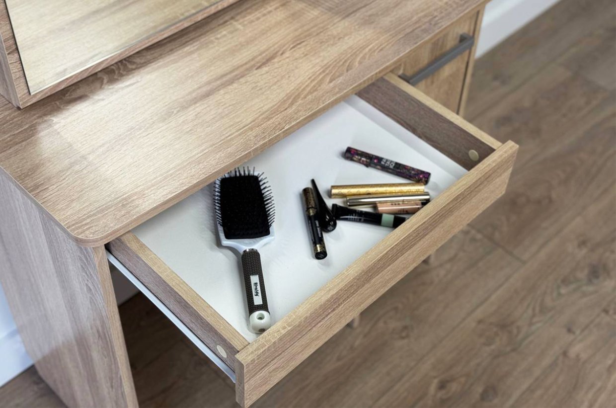 Виктория-1 – это не просто Трюмо. Это место, где каждая деталь важна. С его помощью вы сможете организовать все необходимое: от косметики до аксессуаров. Удобные отделения, выдвижной ящик и просторные полки сделают использование столика максимально комфортным.
